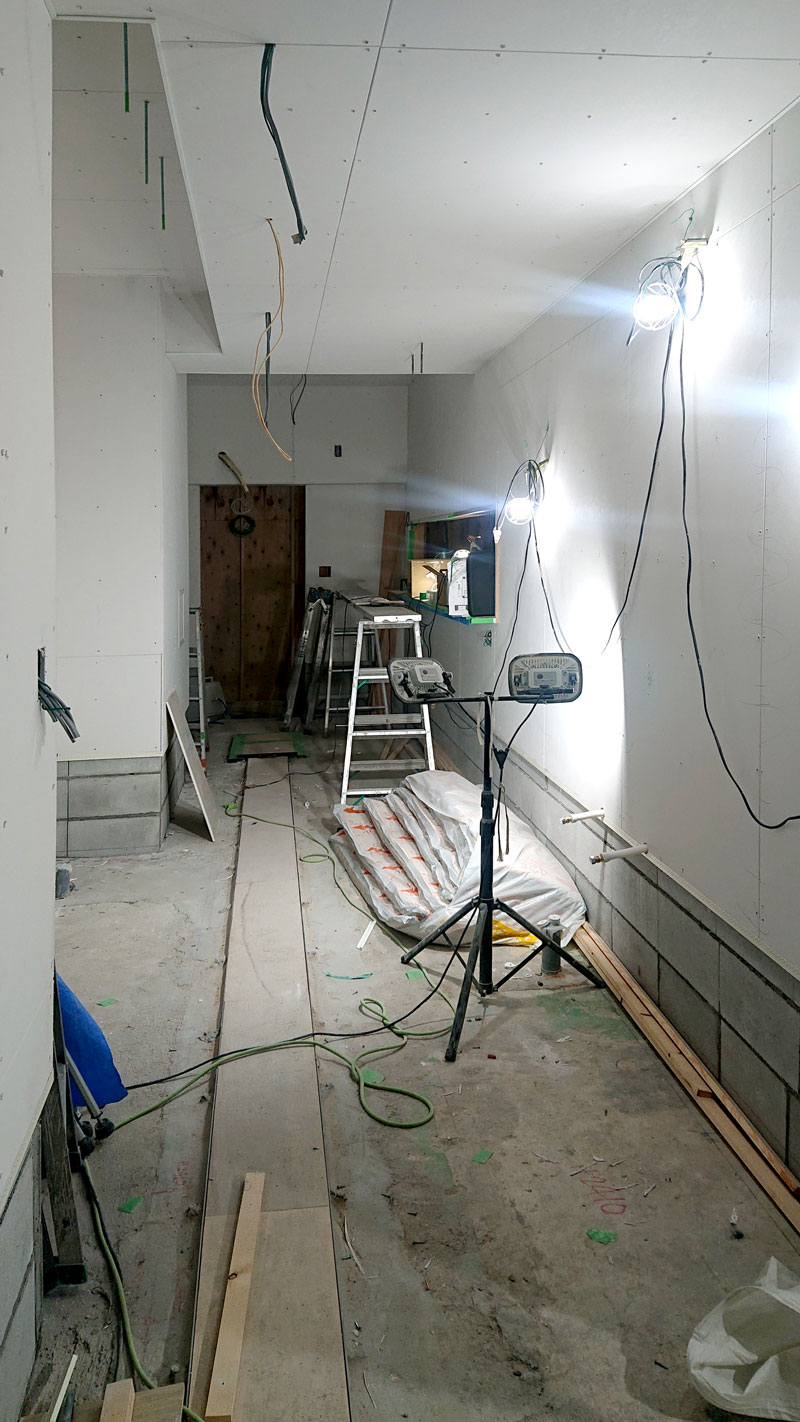 間仕切りも立ってきて、客席と厨房が仕切られました。