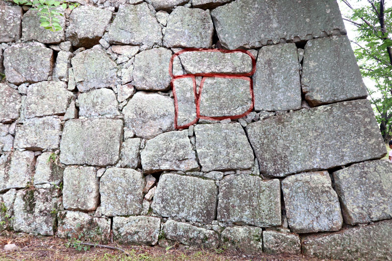 確かにここの石だけ積み方が違いました。笑