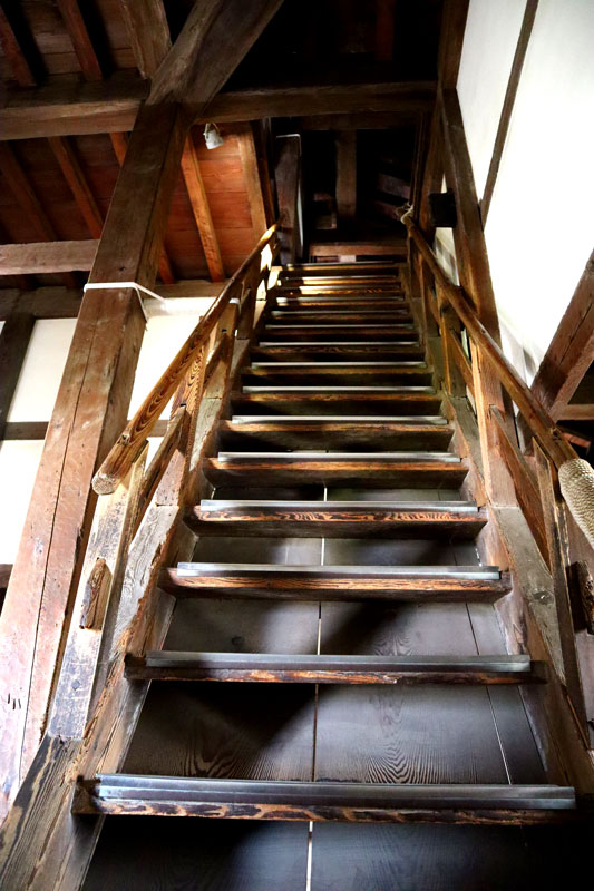 やっぱりすごい急な階段。お城と言えばこうなりますよね。笑