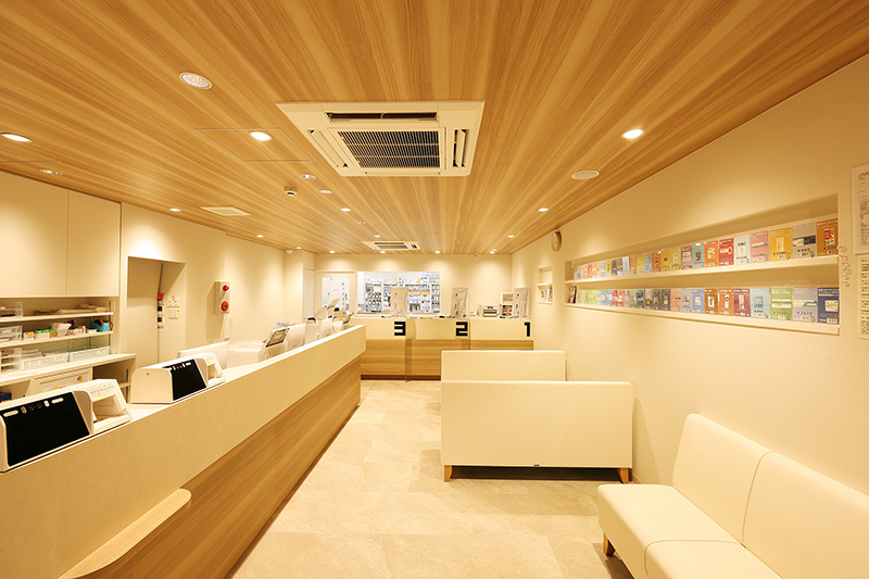 どの世代の方も安心して立ち寄れる“まちの薬局”としての在り方を細部の設計や色彩に込めています。