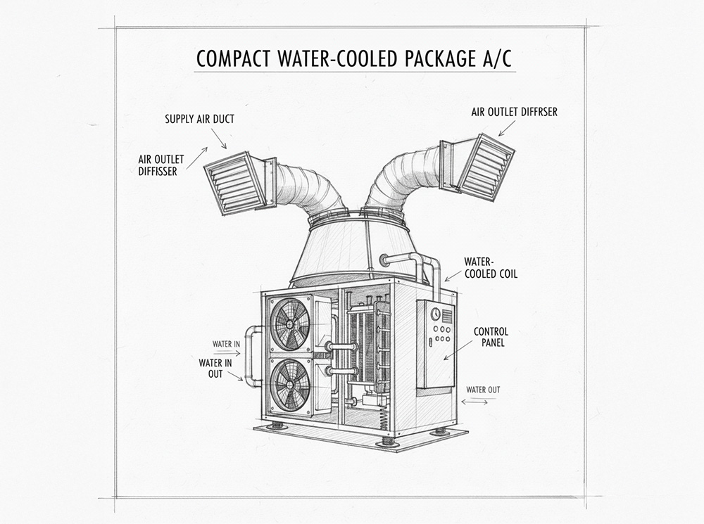 調べてみると、小空間用の水冷式パッケージエアコンは確かに存在していました。