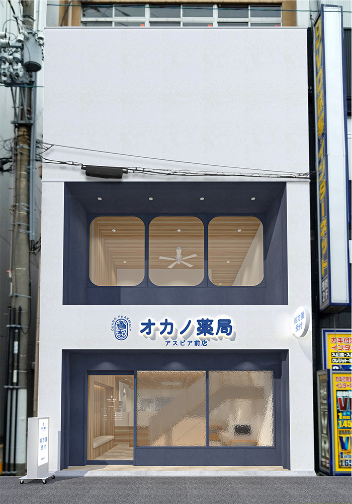 まずは、オカノ薬局 アスピア前店 ファサードのイメージパースです。