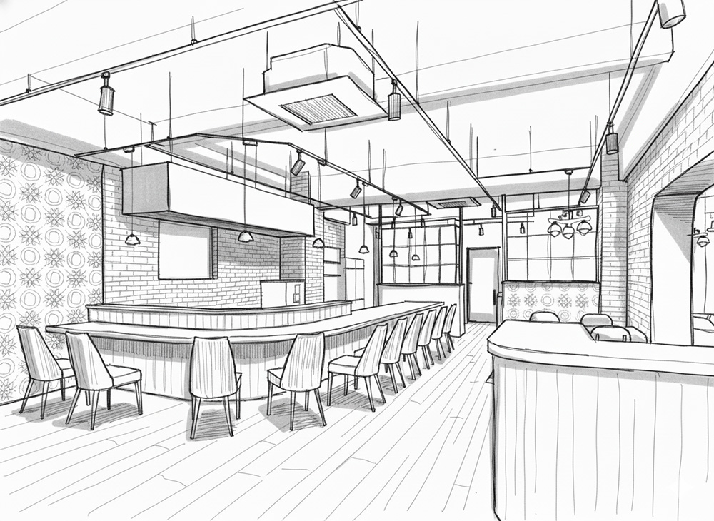 実際の店舗とパースを並べて、 どのくらい差があるのかを見比べてみたいと思います。